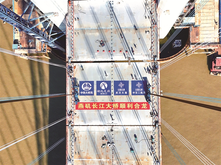 逢山開路、遇水架橋。萬里長江之上,一座座大橋宛若飛虹凌空。在湖北,又見鋼鐵巨龍?jiān)浇?2月7日,隨著最后一段鋼混組合梁吊裝到位,連接鄂州市與黃岡市兩地的燕磯長江大橋全線貫通。