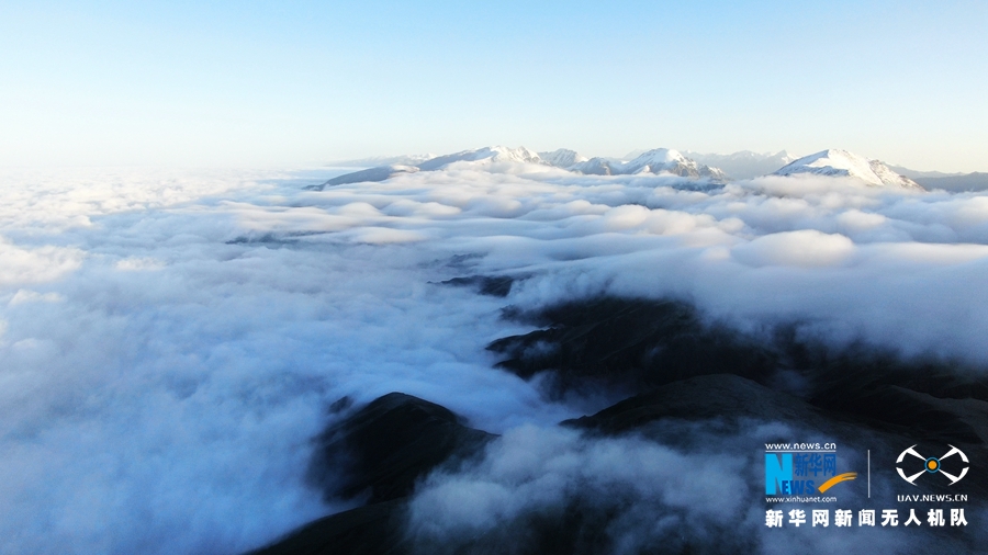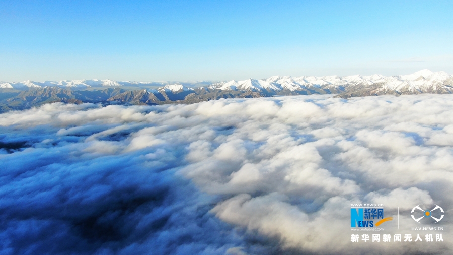 這是8月18日在甘肅省肅南裕固族自治縣境內(nèi)拍攝的祁連山云霧景觀。當(dāng)日,祁連山區(qū)云霧繚繞,從高空俯瞰,如波濤洶涌起伏,與雪山、藍(lán)天相互輝映,美不勝收。(飛手:武雪峰 攝影:安維斌)