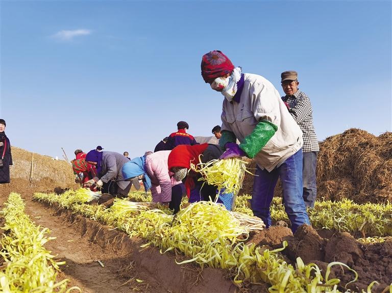 “今年地頭價(jià)每斤15元,韭黃價(jià)格逐年增長(zhǎng),村民收入持續(xù)增加,宣傳太重要了。”韭黃開(kāi)鐮節(jié)現(xiàn)場(chǎng),村民們把剛收割的韭黃擺在地頭銷售,慕名而來(lái)的“客人”圍攏過(guò)來(lái),村民把一捆捆金燦燦的韭黃過(guò)稱、裝袋,接著到手的一疊疊鈔票。“給韭黃抖土感覺(jué)就像數(shù)錢(qián)一樣,嘿嘿,麥草下的‘黃金’今年又豐收了。”村民們你一言我一語(yǔ),爽朗的笑聲回蕩在冬日的余暉里。
