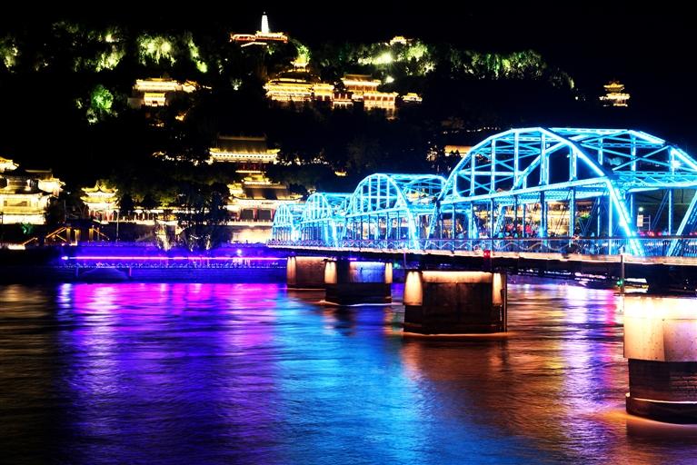 中國甘肅網(wǎng)5月24日訊 據(jù)蘭州日報報道記者 張建平 攝)為迎接甘肅省第十四次黨代會勝利召開,我市在標(biāo)志性橋梁、廣場及樓體精心組織以“蘭州藍(lán)”為主題的燈光秀,營造濃厚的喜慶氛圍。中山橋、黃河樓等處燈光展示“蘭州藍(lán)”,這顯示了全市上下守護碧水藍(lán)天的信心,更昭示著全市黨員干部堅定垂范清廉蘭州,共建政治生態(tài)“蘭州藍(lán)”的決心。