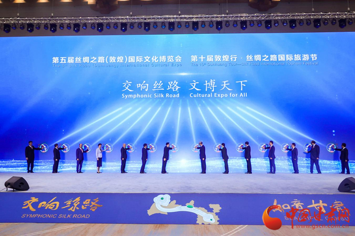 第五屆絲綢之路(敦煌)國際文化博覽會和第十屆敦煌行·絲綢之路國際旅游節(jié)于2021年9月24日—26日在甘肅省敦煌市隆重舉行。中共中央政治局委員、中央書記處書記、中宣部部長黃坤明以視頻形式出席開幕式暨高峰會議并發(fā)表主旨演講,300多名國外、國際組織及國內(nèi)省區(qū)市代表現(xiàn)場參加會議,400多萬網(wǎng)友線上參加有關活動。大會以習近平新時代中國特色社會主義思想為指導,認真落實“一帶一路”倡議,以線上線下相結(jié)合的方式舉辦一系列主體活動,有力促進絲路沿線各國文化交流與旅游合作,有效增進文化認同與情感共鳴,是一次展示中國文化自信、共商“一帶一路”建設、推動文旅融合發(fā)展的盛會,是一次提升甘肅對外影響力、展示開放新形象、凝聚發(fā)展新動力的盛會,得到了國際社會的廣泛贊譽和一致好評。