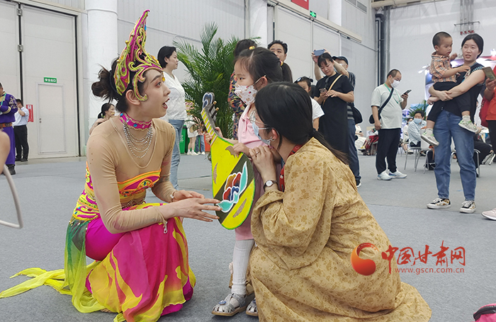 此外,甘肅展區(qū)專設(shè)“我在敦煌畫壁畫”互動(dòng)展臺(tái),嘉賓市民可以在這里通過數(shù)字技術(shù),沉浸式體驗(yàn)壁畫創(chuàng)作過程,跨越千年,溯源敦煌舞在壁畫上最初的樣子。
