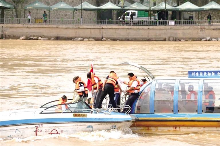 中國甘肅網6月21日訊 據蘭州晚報報道 近日,由蘭州市交通運輸委員會主辦,蘭州水運集團有限公司承辦的2023年水上交通應急演練活動在蘭州市白塔山碼頭水域順利開展。