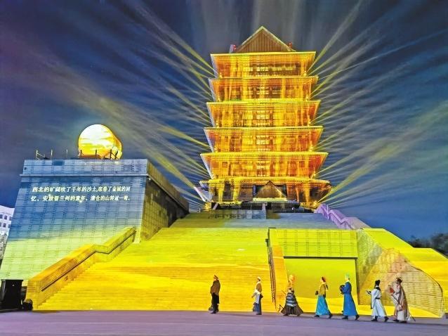 在黃河樓景區(qū),平時(shí)只有周末觀演的“黃河頌·大有蘭州”多媒體實(shí)景演出開啟了為期一個(gè)月的常態(tài)化巡演,每晚9時(shí),璀璨的光影映襯著巍峨雄壯的黃河樓,在3D Mapping多媒體技術(shù)的加持下,帶給游客難忘的光影夜游體驗(yàn)。而近日黃河樓入園游客較平時(shí)也增長了3倍之多,登樓參觀人數(shù)日均達(dá)到3000人次。