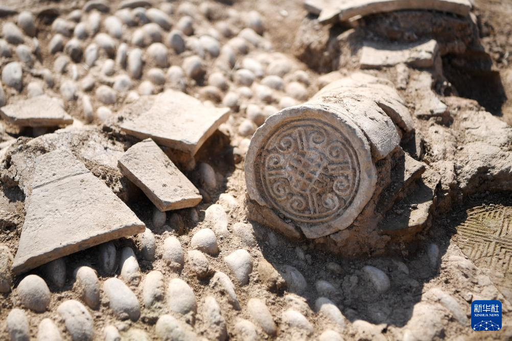 這是甘肅省隴南市禮縣四角坪遺址出土的云紋瓦當(2022年6月10日攝)。新華社記者 陳斌 攝