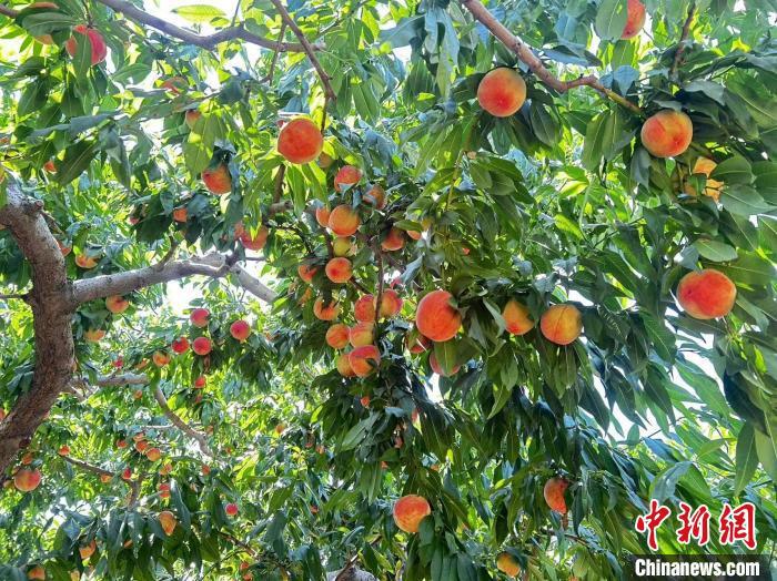 中新網(wǎng)蘭州7月31日電 (記者 閆姣)7月底,走進(jìn)蘭州市城關(guān)區(qū)伏龍坪街道卓家溝村,陣陣果香撲鼻而來(lái),粉嘟嘟的桃子掛滿枝頭。據(jù)當(dāng)?shù)毓r(nóng)講述,這里的果蔬采用黃河水澆灌,加之地理位置特殊,所產(chǎn)水果水分足、口感好,常被“訂單式”銷售至周邊地區(qū)及上海、廣州、江蘇等地。