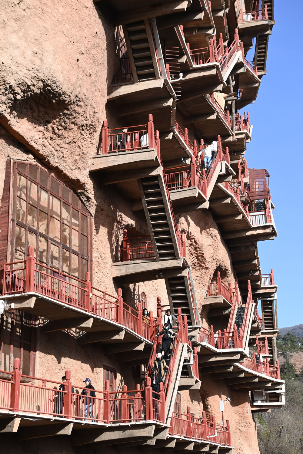 游客在甘肅天水市麥積山石窟游覽 范培珅 攝
