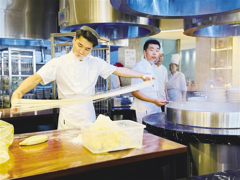 百舸爭流,千帆競渡。當下,蘭州牛肉拉面行業(yè)紛紛在提質升級,更新迭代。近段時間以來,蘭州牛肉拉面行業(yè)的后起之秀——周達·觀金城精品牛肉面店成為不少市民游客網(wǎng)紅打卡地標。目前蘭州市內有牛肉拉面館1280余家,周達·觀金城精品牛肉面品牌于三年前確立,短短的三年時間里,它是怎么做到在眾多牛肉拉面店中脫穎而出的?它到底有什么特色?和蘭州其他的老字號牛肉拉面到底有什么不一樣?優(yōu)勢在哪里?帶著這一系列的疑問,8月28日,記者走進周達·觀金城精品牛肉面店一探究竟。