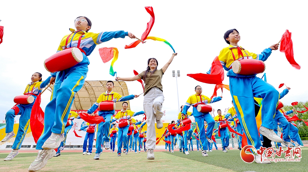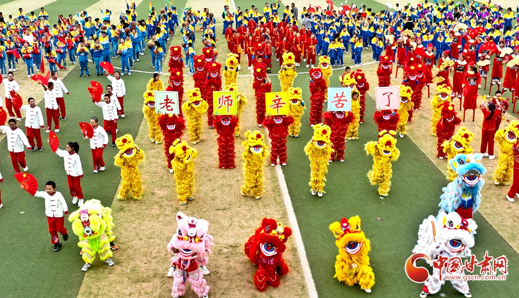 9月5日,在張掖市甘州區(qū)大成學校體育場上,舞龍、舞獅、踩高蹺、扇子舞、威風鑼鼓、腰鼓、武術等38個社團依次進行成果展演,師生們在傳承中華民族的優(yōu)秀文化,探索向美而行的新路徑中,歡慶即將到來的第40個教師節(jié)。