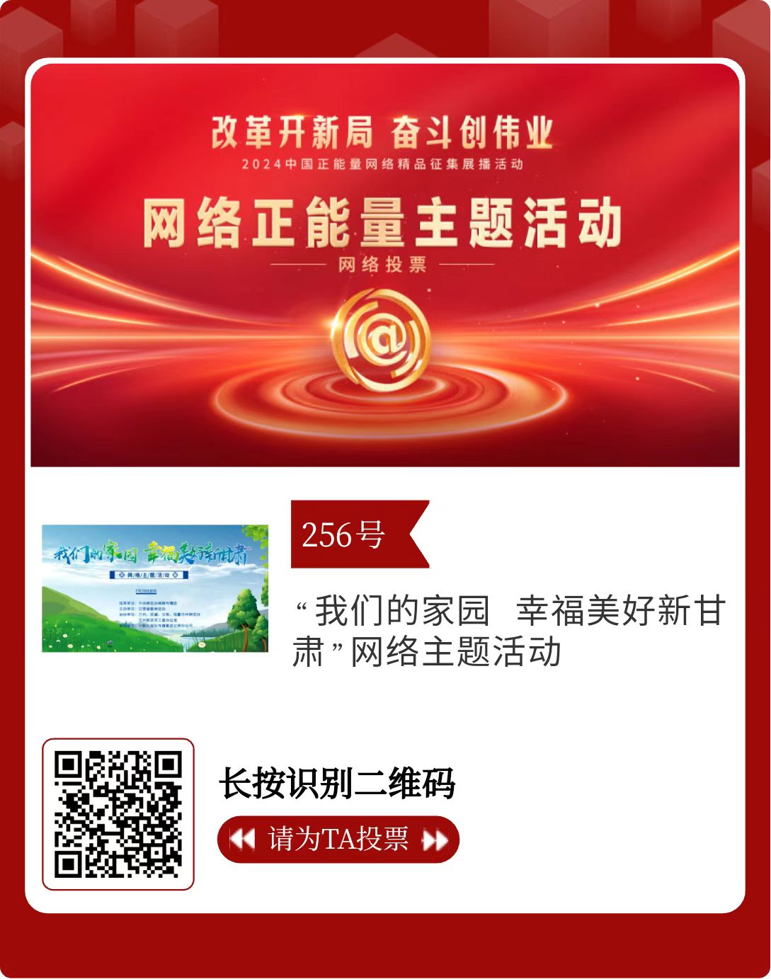 2024中國正能量網(wǎng)絡(luò)精品,蘭州入圍作品邀您投票!
