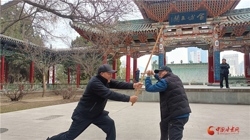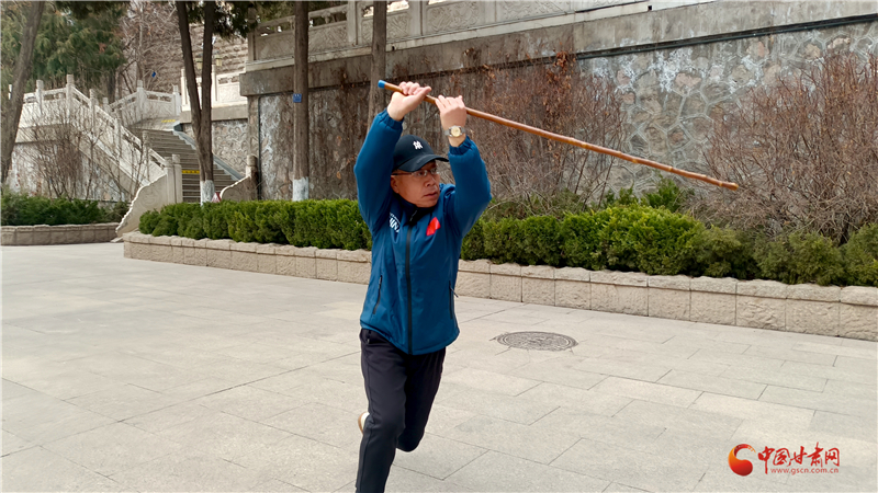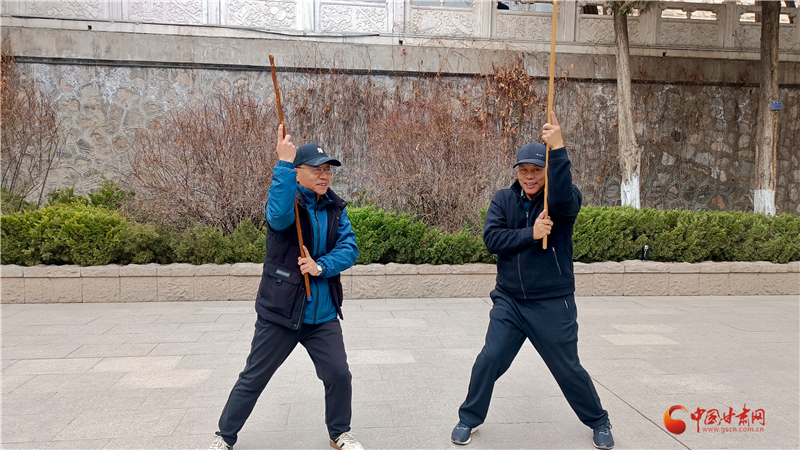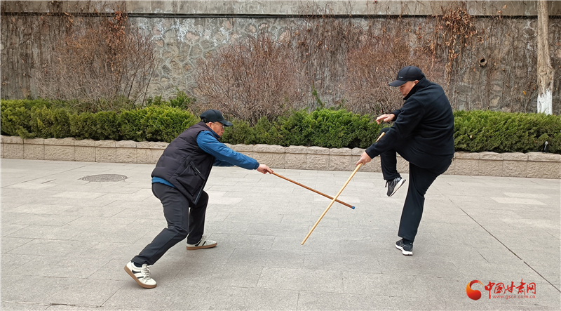 “鞭桿自古就有,甘肅天水、隴南、定西一帶也有習武者,我父親總結(jié)了蘭州纏海纏桿體系,為鞭桿百花園再添新力量。”王建國介紹蘭州纏海鞭桿體系。