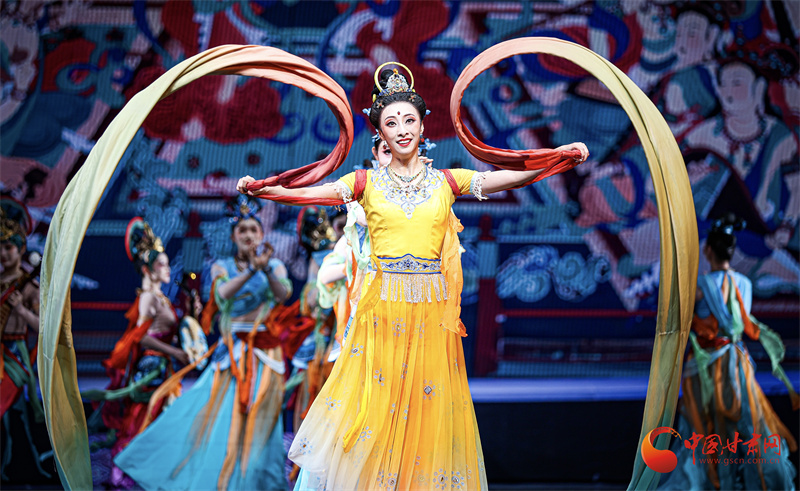 中國甘肅網(wǎng)9月21日訊(西北角·中國甘肅網(wǎng)記者 宋芳科 任磊 黃宛悠 鄭蕓蕓)絲路長風奏和合樂章,花雨繽紛迎四海賓朋。9月20日晚,在第八屆絲綢之路(敦煌)國際文化博覽會即將啟幕之際,敦煌大劇院內(nèi)華燈初上、舞韻生輝、樂聲流淌,舞劇《絲路花雨》新版作為文博會迎賓演出震撼上演。這部承載著46年藝術(shù)積淀的中國舞劇經(jīng)典,以“守敦煌舞韻之根,創(chuàng)時代表達之新”的藝術(shù)實踐,為與會全球嘉賓帶來了一場穿越千年的文化藝術(shù)盛宴。