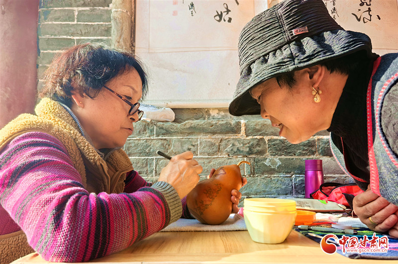 她還走進(jìn)蘭州開放大學(xué),為熱愛刻葫蘆的老年人手把手地傳授技藝,耐心細(xì)致地指導(dǎo)他們?nèi)绾卧谛⌒〉暮J上刻畫出精美的圖案。