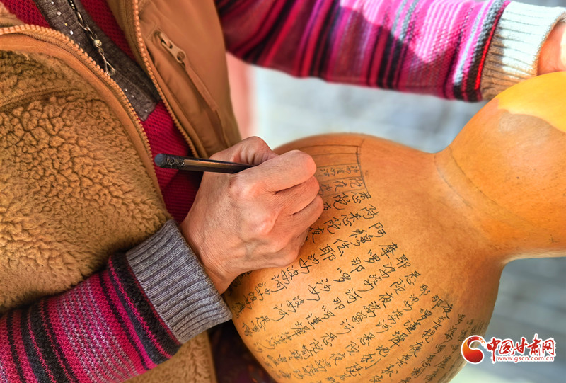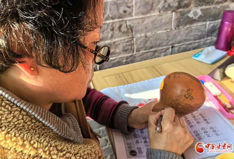 深秋的午后,陳兵手持刻刀,在小小的葫蘆上精雕細(xì)琢,仿佛在與時(shí)光對(duì)話,將一個(gè)個(gè)美好的愿景都鐫刻其中。