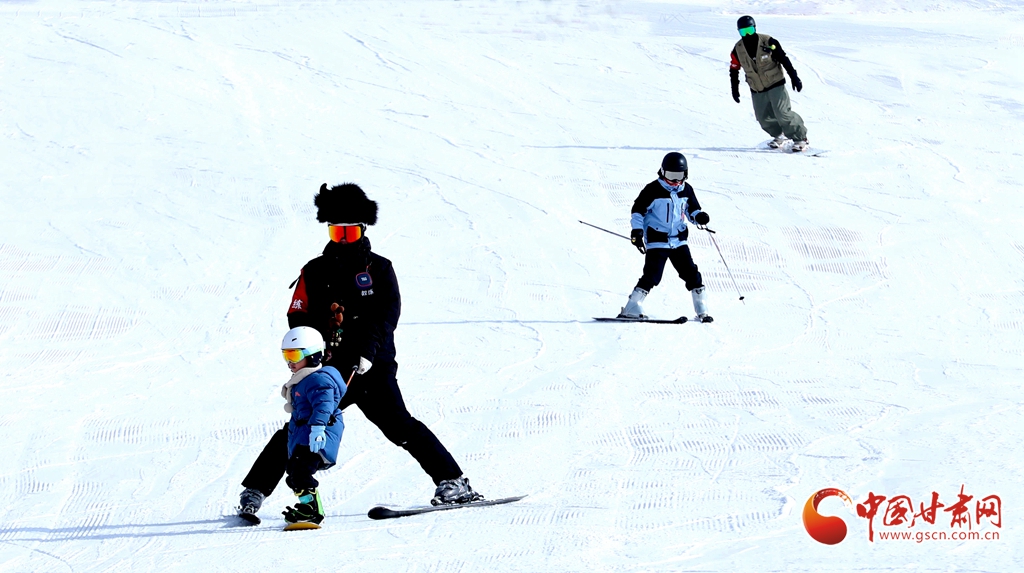 1月24日,在張掖肅南裕固族自治縣的康樂草原祁連山滑雪場,冰雪愛好者和游客攜孩子一同迎風馳雪,樂享冰雪運動的激情。他們在運動中強健體魄、磨煉意志,同時迎接即將到來的新春。