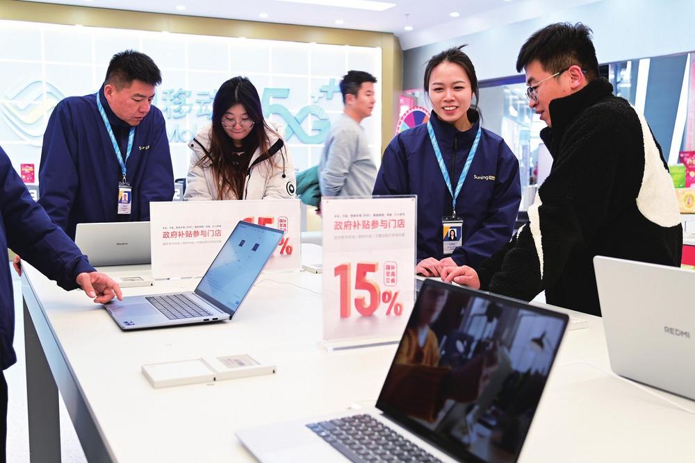 電腦等3C數(shù)碼產(chǎn)品享15%國補(bǔ)補(bǔ)貼,吸引眾多消費(fèi)者到店咨詢選購。 本版圖片由新甘肅·甘肅經(jīng)濟(jì)日報(bào)記者瞿娟攝