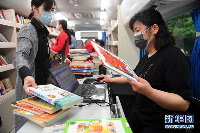 3月26日,在長(zhǎng)沙岳麓區(qū)石嶺塘社區(qū),家長(zhǎng)和小朋友在流動(dòng)圖書館里挑選書籍。 近日,在做好疫情防控工作的同時(shí),長(zhǎng)沙流動(dòng)圖書館恢復(fù)運(yùn)營(yíng)。長(zhǎng)沙流動(dòng)圖書館是長(zhǎng)沙圖書館的總分館流動(dòng)服務(wù)項(xiàng)目之一,以大巴車為載體,每月定期到社區(qū)、學(xué)校、企業(yè)、工地等區(qū)域,為市民提供閱覽、咨詢、辦證、借書、還書等便捷化公共服務(wù)。 新華社記者 陳澤國(guó) 攝