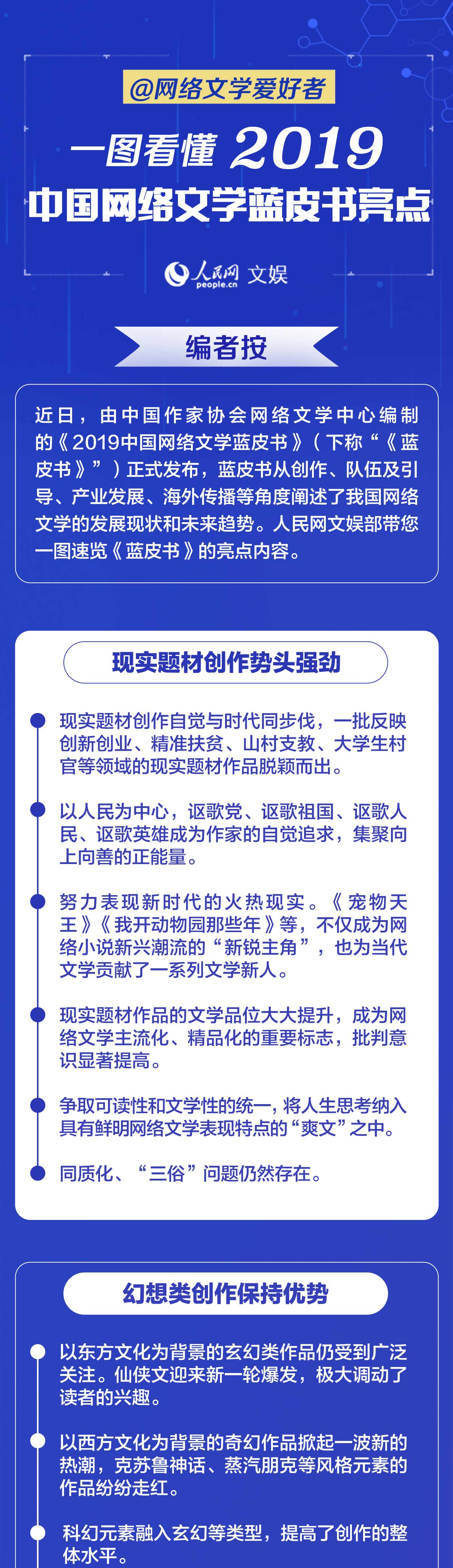 @網(wǎng)絡(luò)文學(xué)愛好者 一圖看懂2019中國網(wǎng)絡(luò)文學(xué)藍(lán)皮書亮點(diǎn)