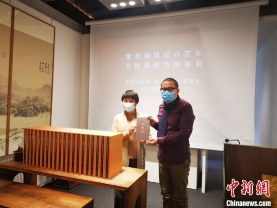 中新網(wǎng)北京12月28日電 (記者 應(yīng)妮)“故宮出版社攜手新浪揚(yáng)帆公益基金圖書(shū)捐贈(zèng)發(fā)布會(huì)”28日在故宮博物院紫禁書(shū)院舉行。故宮出版社精選39種圖書(shū)共7800冊(cè),由新浪揚(yáng)帆公益基金定向捐贈(zèng)給貴州、甘肅等省貧困山區(qū)的200所學(xué)校。這些圖書(shū)包括《故宮畫(huà)譜》系列、《故宮藏畫(huà)的故事》《千里江山圖的故事》《清明上河圖的故事》等,內(nèi)容涉及600年的紫禁城歷史、人物、建筑及院藏珍品介紹等多方面。
