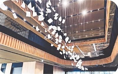走進大廳,英國藝術(shù)家保羅·考克斯基在挑高大廳創(chuàng)作的公共藝術(shù)作品“陣風(fēng)”映入眼簾。上千本白紙書頁隨風(fēng)騰飛的瞬間在空中凝結(jié)下來,象征著閱讀的快樂與思考,震撼的畫面宛如置身充滿藝術(shù)氣息的美術(shù)館。