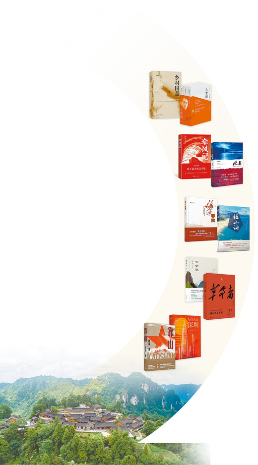 書(shū)影圖片從上至下依次為《鄉(xiāng)村國(guó)是》《人世間》《牽風(fēng)記》《北上》《海邊春秋》《經(jīng)山?!贰对浦杏洝贰陡锩摺贰稙槭裁词巧钲凇贰犊可健贰YY料圖片