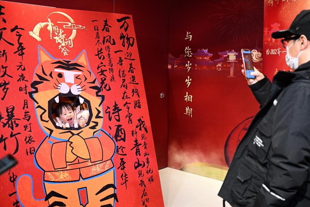 春節(jié)假期,作為文化節(jié)目《2022中國詩詞大會》的線下活動,詩詞市集在北京國貿(mào)商城舉行?;顒友埵忻駥懴乱痪湓姡o2022年寄出一張詩詞明信片,帶動詩歌熱潮,推動詩詞文化走入百姓家。
