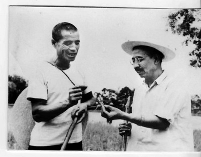 柳青(右)與《創(chuàng)業(yè)史》中梁生寶原型人物王家斌在一起檢查生產(chǎn)。