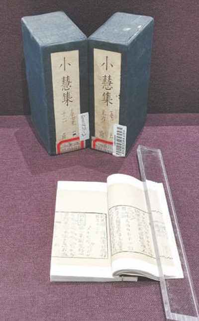 中國非物質(zhì)文化遺產(chǎn)館展出的清代刻本《小慧集》,其中用工尺譜記錄的“鮮花調(diào)”是民歌《茉莉花》最早的曲譜之一。 記者 周飛亞攝