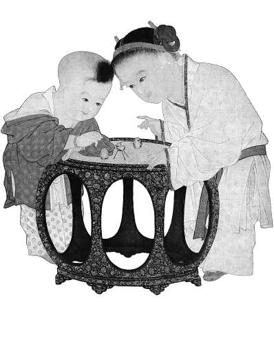 秉燭夜游是大人的游戲,那么古代的孩子玩什么呢?《陪孩子看中國畫》專門介紹了以兒童游戲為主題的圖畫,其中《秋庭戲嬰圖》是宋代描寫童心的經(jīng)典畫作,刻畫了姐弟倆玩推棗磨的游戲。棗磨的制作原料非常簡單,由三顆鮮棗、三根短棍和一根長棍組成。這是古代北方秋天棗子成熟之后,孩子們經(jīng)常玩的一種自制玩具。孩子身后還有很多其他商業(yè)制作的玩具,但姐弟倆卻專注玩著自制的玩具。田玉彬感慨:“姐弟倆專注欣悅地玩推棗磨,而把一堆商品玩具丟在身后,這看似無意的對比想來是出于畫家的精心安排,他或許是想說童心并不在乎精巧華貴,而在乎清新純潔。”
