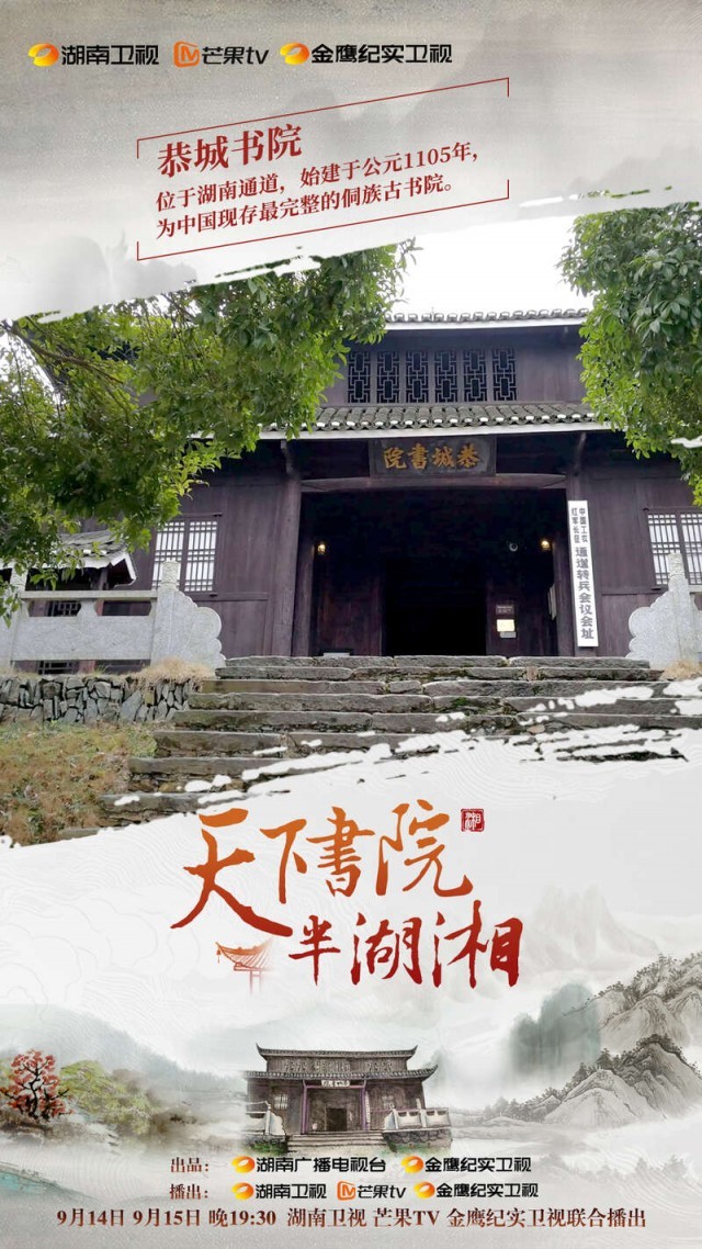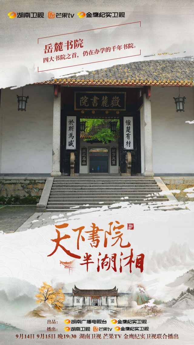 中國(guó)青年報(bào)客戶端訊(中青報(bào)·中青網(wǎng)記者 蔣肖斌)人文紀(jì)錄片《天下書(shū)院半湖湘》于9月14日、15日晚,在湖南衛(wèi)視、芒果TV、金鷹紀(jì)實(shí)等平臺(tái)同步推出。