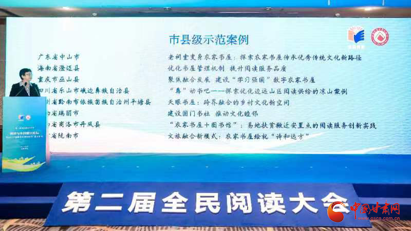中國(guó)甘肅網(wǎng)4月25日訊 日前,第二屆全民閱讀大會(huì)·閱讀與鄉(xiāng)村振興論壇暨2023“新時(shí)代鄉(xiāng)村閱讀季”啟動(dòng)儀式在浙江杭州舉辦。論壇發(fā)布了在全國(guó)遴選出的30個(gè)農(nóng)家書屋創(chuàng)新示范案例、50位“鄉(xiāng)村閱讀推廣人”和198個(gè)“最美農(nóng)家書屋”入選名單,集中展示了近年來各地推動(dòng)農(nóng)家書屋提質(zhì)增效的生動(dòng)實(shí)踐和創(chuàng)新成果,涌現(xiàn)出來的鄉(xiāng)村閱讀推廣示范人物和最美書屋,為探索新時(shí)代鄉(xiāng)村閱讀發(fā)展路徑提供了重要借鑒。
