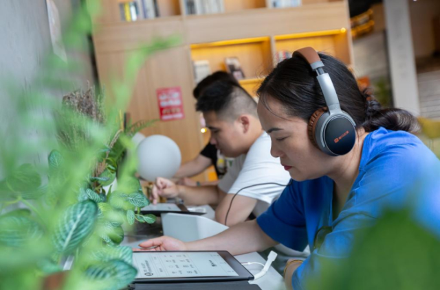 5月16日,在南昌市孺子書(shū)房·東湖意庫(kù)館,讀者利用聽(tīng)書(shū)機(jī)體驗(yàn)在線閱讀。