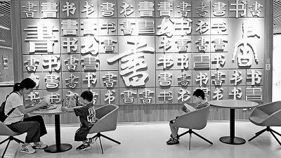 7月24日,家長帶孩子在位于呼和浩特市的內(nèi)蒙古新華書店內(nèi)閱讀書籍。丁根厚攝/光明圖片