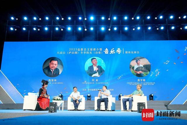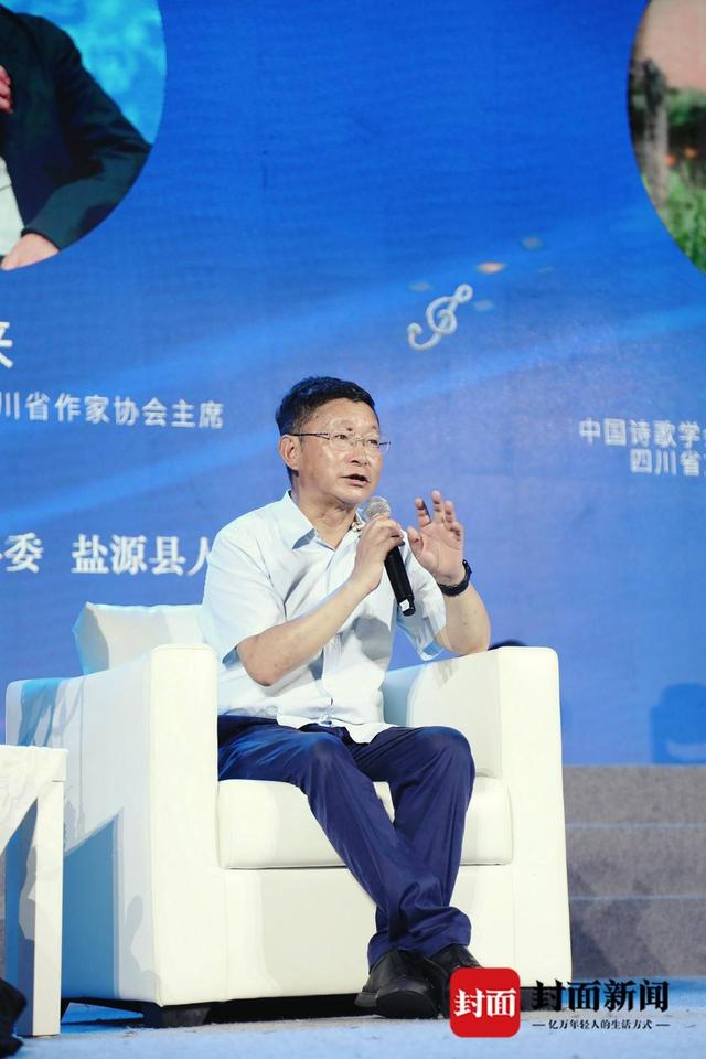 現(xiàn)場(chǎng),阿來、陳智林與龔學(xué)敏就“詩歌創(chuàng)作如何與音樂結(jié)合”“詩歌如何賦能鹽源縣文旅發(fā)展”“如何打造四川特色的文化事業(yè)和文化產(chǎn)業(yè)”等議題展開了對(duì)話,深入探討鹽源的詩與遠(yuǎn)方。