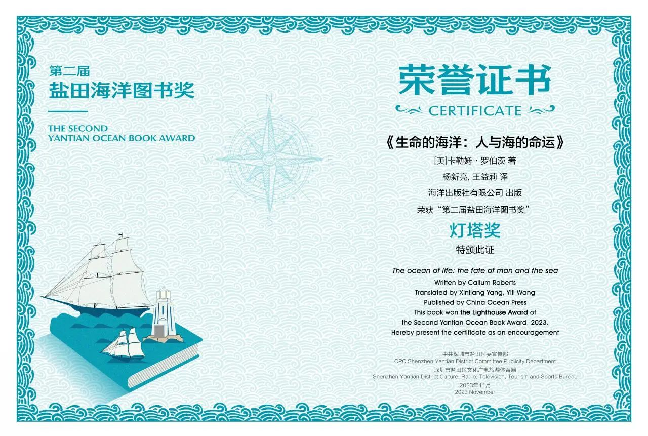 海洋出版社有限公司出版的《生命的海洋:人與海的命運》 于2023年11月獲第二屆“鹽田海洋圖書獎”燈塔獎。