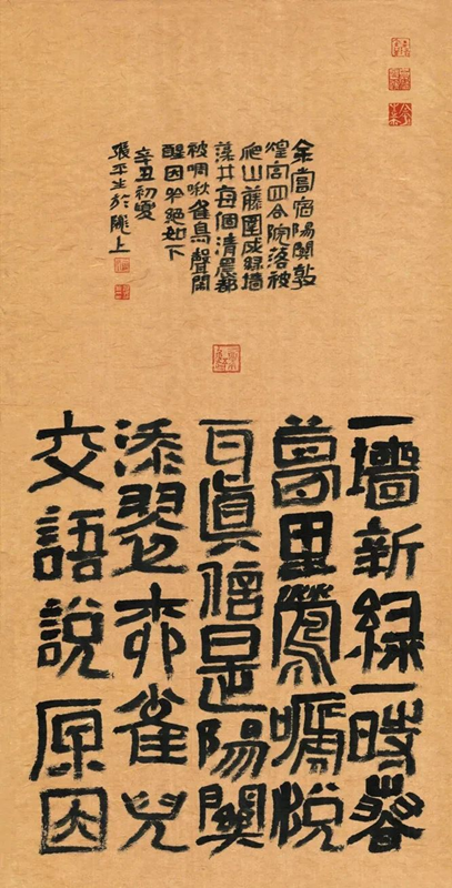 張平生是“詩人中的書法家,是書法家中的詩人”,是真正實現(xiàn)“我筆寫我文”的為數(shù)不多的“藝文兼?zhèn)?rdquo;型書法家。他的的書法,充分發(fā)揮“二爨”優(yōu)勢,上溯漢碑簡牘,把三者的風格重新優(yōu)化組合,生發(fā)出新的系列,活化了“二爨”在當代的創(chuàng)作形態(tài),獲得廣泛贊譽。