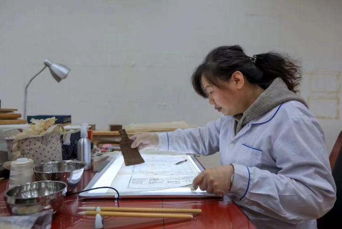 每一次修復(fù),都是對古籍歷史的一次深入探索。王斌通過自己的雙手,讓那些因歲月磨損的古籍重?zé)ㄐ律屇切┍贿z忘的歷史再次被人們記起。工作至今,在她的巧手慢工之下,幾百冊古籍得以重現(xiàn)芳華。