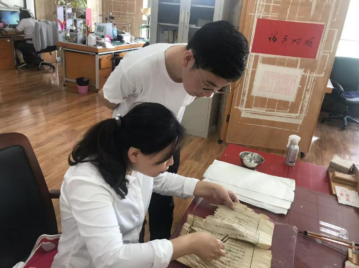 2009年,從小就對傳統(tǒng)歷史文化感興趣的王斌主動申請,從遼寧省圖書館的其他部門轉(zhuǎn)到古籍保護(hù)中心,加入到圖書館的古籍修復(fù)隊伍中。