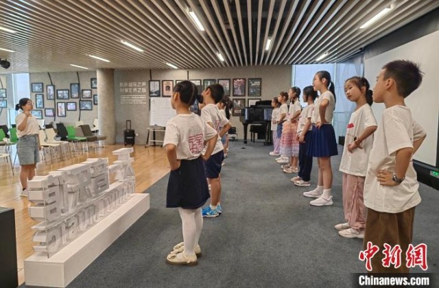 寧波圖書館的“天一童藝”公益項目現(xiàn)場,孩子們跟著老師學唱由《千字文》改編的歌曲?!≈行戮W(wǎng)記者 應妮 攝