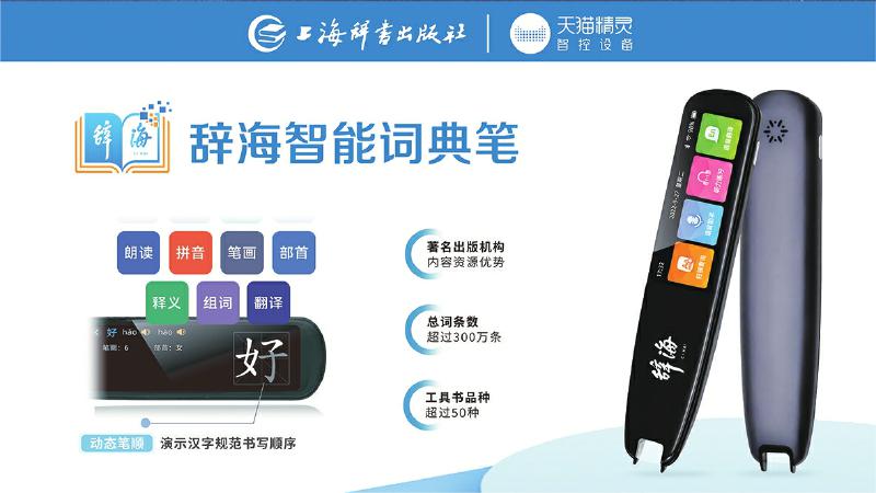 為了更好地適應(yīng)用戶在紙質(zhì)閱讀過(guò)程中的快速查檢需求,辭書(shū)社經(jīng)過(guò)數(shù)年設(shè)計(jì)研發(fā),于2022年9月推出辭海智能詞典筆。詞典筆充分依托聚典平臺(tái)積累的海量?jī)?nèi)容資源,將1.6億字裝進(jìn)一支詞典筆,內(nèi)置詞條達(dá)到了300余萬(wàn)條,收錄了《辭海》(第七版)和《大辭?!贰稘h語(yǔ)大詞典》《英漢大詞典》《世紀(jì)漢英大詞典》等國(guó)家級(jí)標(biāo)志性工具書(shū),整合《現(xiàn)代漢語(yǔ)大詞典》《現(xiàn)代漢語(yǔ)規(guī)范詞典》《中國(guó)成語(yǔ)大辭典》《同義詞、反義詞大詞典》等精品工具書(shū),讓用戶每次都能夠查有所得。同時(shí),詞典筆實(shí)現(xiàn)掃讀結(jié)果1秒呈現(xiàn),并融合數(shù)字智能技術(shù),集掃描查詢(xún)、語(yǔ)音助手、聽(tīng)力練習(xí)、語(yǔ)音翻譯、口語(yǔ)測(cè)評(píng)、數(shù)碼錄音、生詞本、文本摘抄等八大功能于一體,實(shí)現(xiàn)一筆多用。