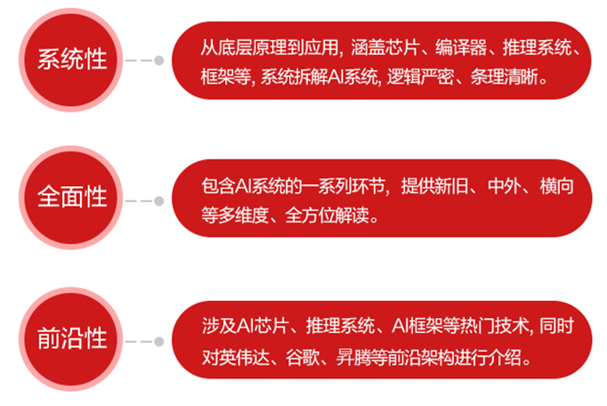 系統(tǒng)性與全棧視角?!禔I系統(tǒng):原理與架構(gòu)》更側(cè)重以系統(tǒng)架構(gòu)視角看待人工智能,而不是拘泥于特定深度學習算法。本書從AI系統(tǒng)的整體概況出發(fā),分為AI硬件與體系結(jié)構(gòu)、AI編譯與計算架構(gòu)、AI推理系統(tǒng)與引擎、AI框架核心模塊四篇進行闡述,深入探討了AI系統(tǒng)背后從底層到應用的軟硬件全棧架構(gòu),為讀者提供了一個全面的學習路徑。