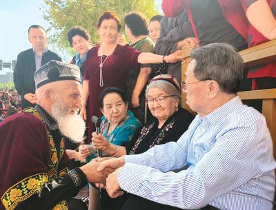 如今,巴彥岱已經(jīng)變成一座新型現(xiàn)代鄉(xiāng)鎮(zhèn)。青楊樹掩映的鄉(xiāng)村道路旁,一幢幢別墅式的民舍邊盛開著玫瑰花,到處可見現(xiàn)代化的學(xué)校、體育場、醫(yī)院、展覽館,還有用王蒙《這邊風(fēng)景》《在伊犁》元素設(shè)計(jì)成的時(shí)尚景觀。人們已經(jīng)把整個(gè)村莊變成了“王蒙書院”,變成了王蒙的老家。“這邊風(fēng)景餐館”“愛彌拉美發(fā)店”“哈麥德游戲廳”“在伊犁超市”等等,走著走著讓人熱淚盈眶。這不是簡單用文學(xué)和旅游能解釋的情景,它是一個(gè)時(shí)代、一個(gè)作家與人民共同生活的現(xiàn)場,是王蒙與鄉(xiāng)親們夢與夢的縈繞,心與心的映現(xiàn)。