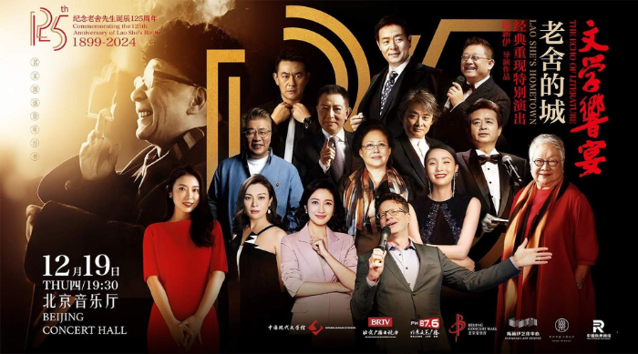 12月19日,一場獨特的文學“響”宴在北京音樂廳舉行。這是一期以老舍為文化主題的詩文雅集,一個關(guān)于歷史文化名城北京的年度盛典。在總導(dǎo)演陳薪伊的引領(lǐng)下,濮存昕、斯琴高娃、史可、陶虹、春妮、季冠霖、李立宏、任志宏、徐濤、大山、李洪濤、小柯、張樹榮等眾多著名藝術(shù)家,共同誦讀老舍先生的經(jīng)典名作,向這位偉大的人民藝術(shù)家致敬。