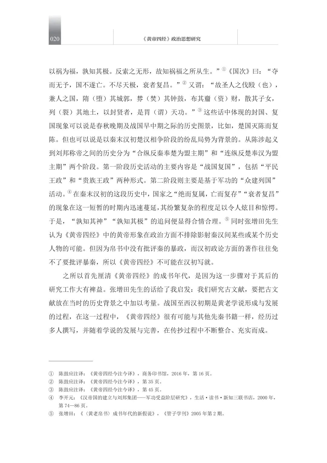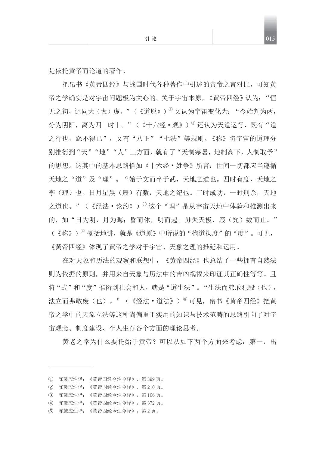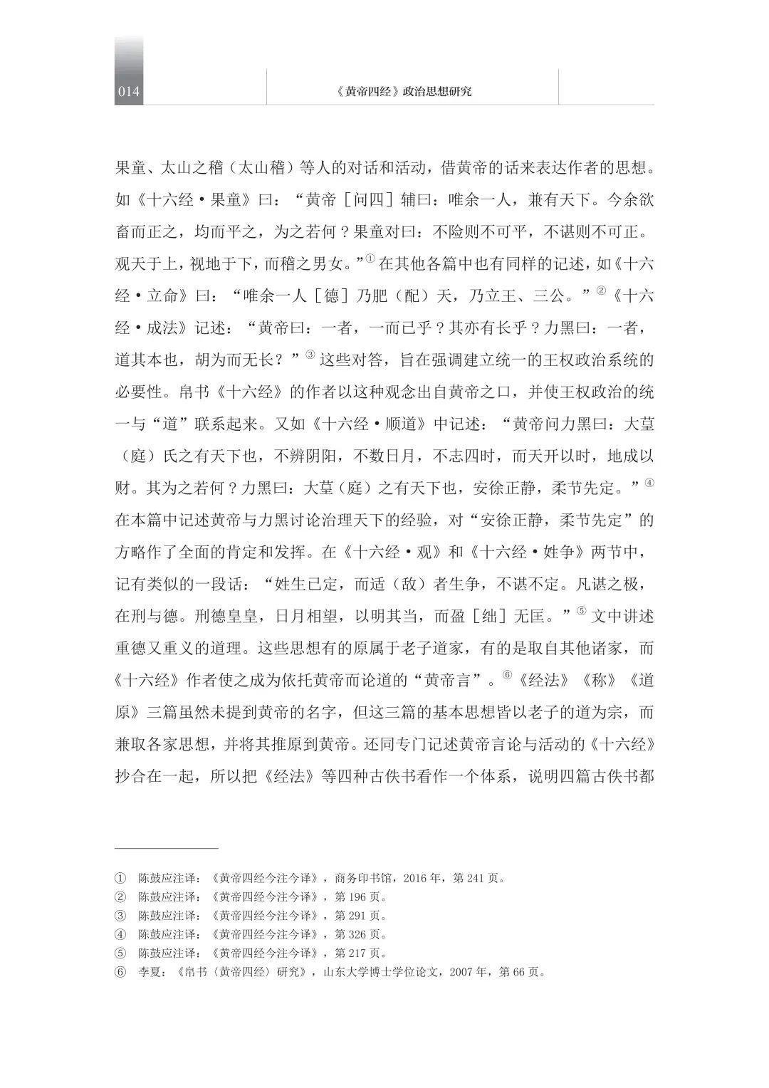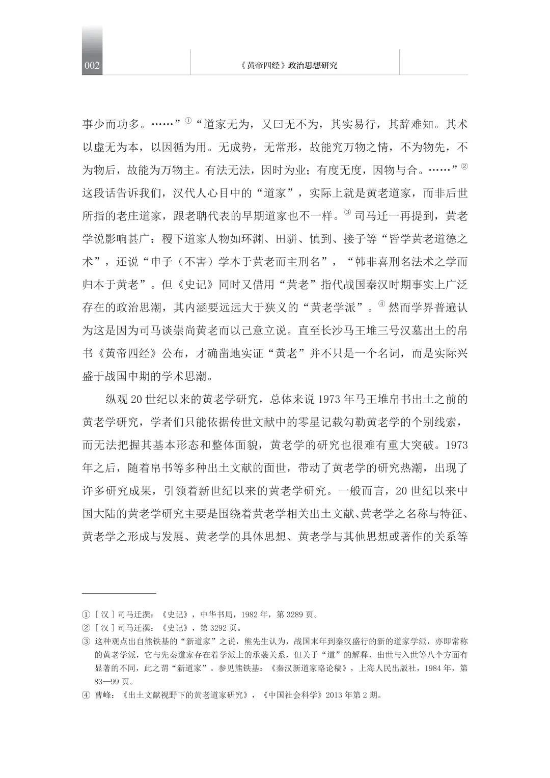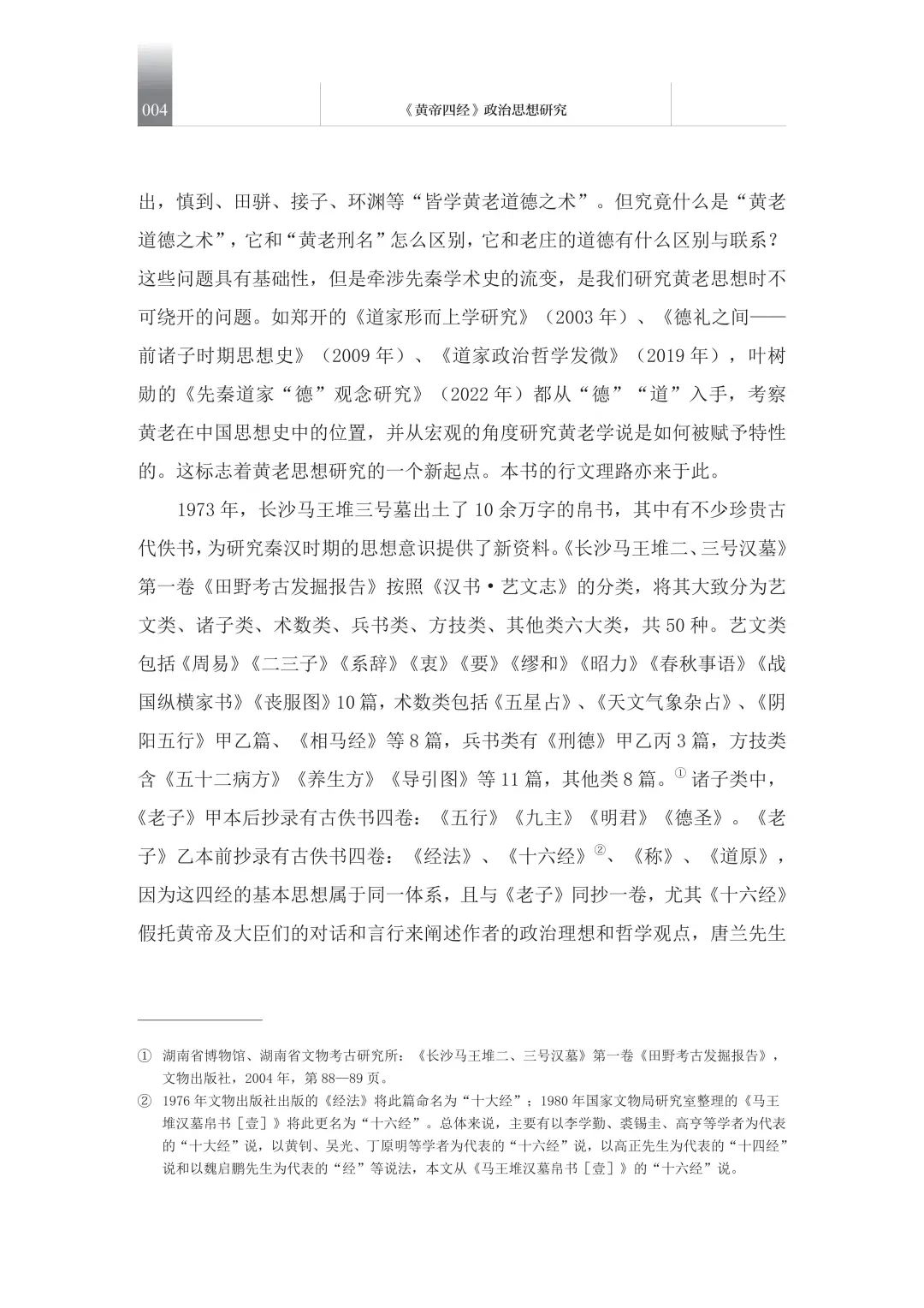 《黃帝四經》作為東周之前各朝修身治國的指導性經典,其修身治世功用迄今依然具有極高的現(xiàn)實意義和指導價值。本書以《黃帝四經》為研究起點,重點探索黃老政治思想中的重要概念,并試圖從核心詞匯“道”“德”概念的演變及其相互作用來探究黃老學說的起源發(fā)展的學術邏輯,尤其從“德”含義的拓展與遷移去分析黃老哲學政治德性的建立,隨之引出黃老政治思想中的重要概念“道法”“刑名”“刑德”“因循”等,并希望由此描摹出黃老政治思想的特性。