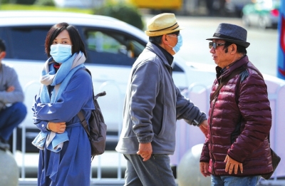 氣溫下降,市民換上厚衣服。 馬軍 攝