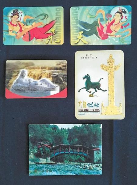 甘肅的自然風光優(yōu)美,人文歷史悠久,經過不斷挖掘,精心保護,成為人們旅游、觀光的理想之地。北京中鈔信用卡廠于2001年制作的“飛”字片、“天”字片“飛天”對卡年歷片,中國工商銀行甘肅分行于2000年設計了《黃河母親》年歷片,中國農業(yè)銀行甘肅分行于1987年設計的《興隆山握橋風光》年歷片,中國遠洋運輸公司上海分公司于1978年制作的《馬踏飛鳥》年歷片,都為甘肅旅游風光作了宣傳。