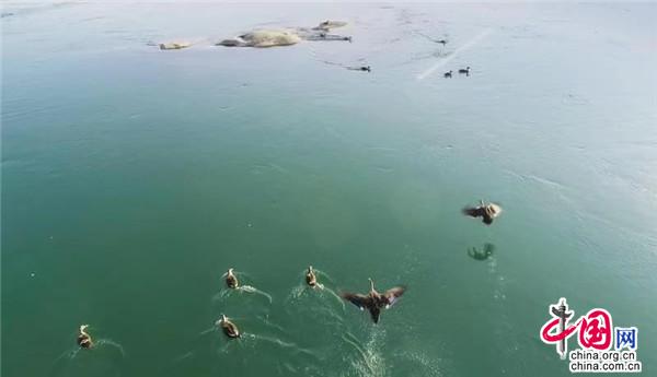 1月12日,在湖南桃江羞女湖國(guó)家濕地公園當(dāng)?shù)財(cái)z影家協(xié)會(huì)成員用無(wú)人機(jī)有幸拍到一群正在資江戲水的野生保護(hù)物種——斑嘴鴨。