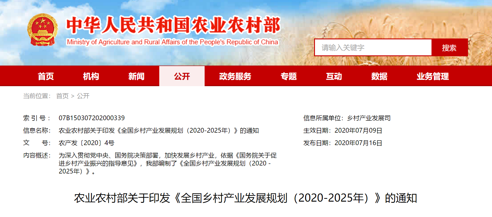 去年7月9日,農(nóng)村農(nóng)業(yè)部正式下發(fā)《全國鄉(xiāng)村產(chǎn)業(yè)發(fā)展規(guī)劃(2020-2025年)》(以下簡稱《規(guī)劃》?!兑?guī)劃》稱,近年來,農(nóng)村創(chuàng)新創(chuàng)業(yè)環(huán)境不斷改善,新產(chǎn)業(yè)新業(yè)態(tài)大量涌現(xiàn),鄉(xiāng)村產(chǎn)業(yè)發(fā)展取得了積極成效。但存在產(chǎn)業(yè)鏈條較短、融合層次較淺、要素活力不足等問題,亟待加強引導、加快發(fā)展。根據(jù)《國務院關于促進鄉(xiāng)村產(chǎn)業(yè)振興的指導意見》要求,為加快發(fā)展以二三產(chǎn)業(yè)為重點的鄉(xiāng)村產(chǎn)業(yè),制定本規(guī)劃。