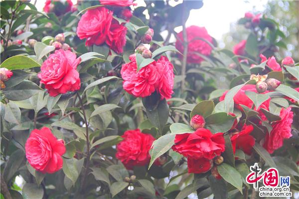 一輪艷陽照四方,一席春風(fēng)綠千山。山茶花是中國傳統(tǒng)名花,也是世界名花之一。2月21日,朋友相約,從縣城出發(fā),約8公里就進(jìn)入九龍生態(tài)園,姿態(tài)各異的山茶花已進(jìn)入盛花期,樹姿虬勁優(yōu)美,綠葉四季不凋,一朵一朵的茶花大如牡丹,燦如云霞,風(fēng)姿綽約,耀眼生輝!植株形姿優(yōu)美,葉濃綠而光澤,花形艷麗繽紛,美艷了。有的鮮紅如火、有的嬌羞染粉、有的晶瑩潔白……滿園茶花勝景。不經(jīng)意間清風(fēng)吹過,暗香徐來,朵朵花兒隨風(fēng)舞。陽光穿透葉子的縫隙,落在花間小道上,花香彌漫整個鼻腔,放低自己,品味花香,眼里有花、心里有花,人生就會像花一樣美麗。