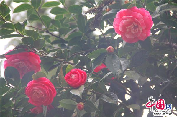 云南羅平小寨山茶花爭奇斗艷 生態(tài)園百花齊放